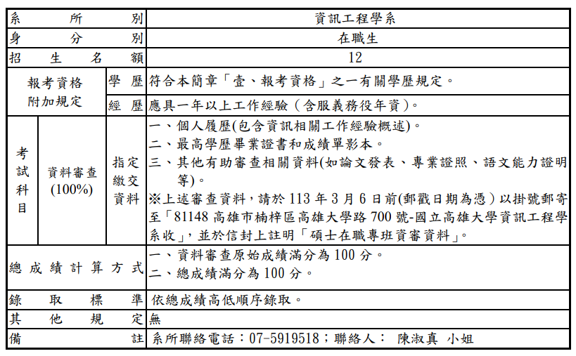 | 二、國立高雄大學 招生資訊: | https://admissions.nuk.edu.tw/ |