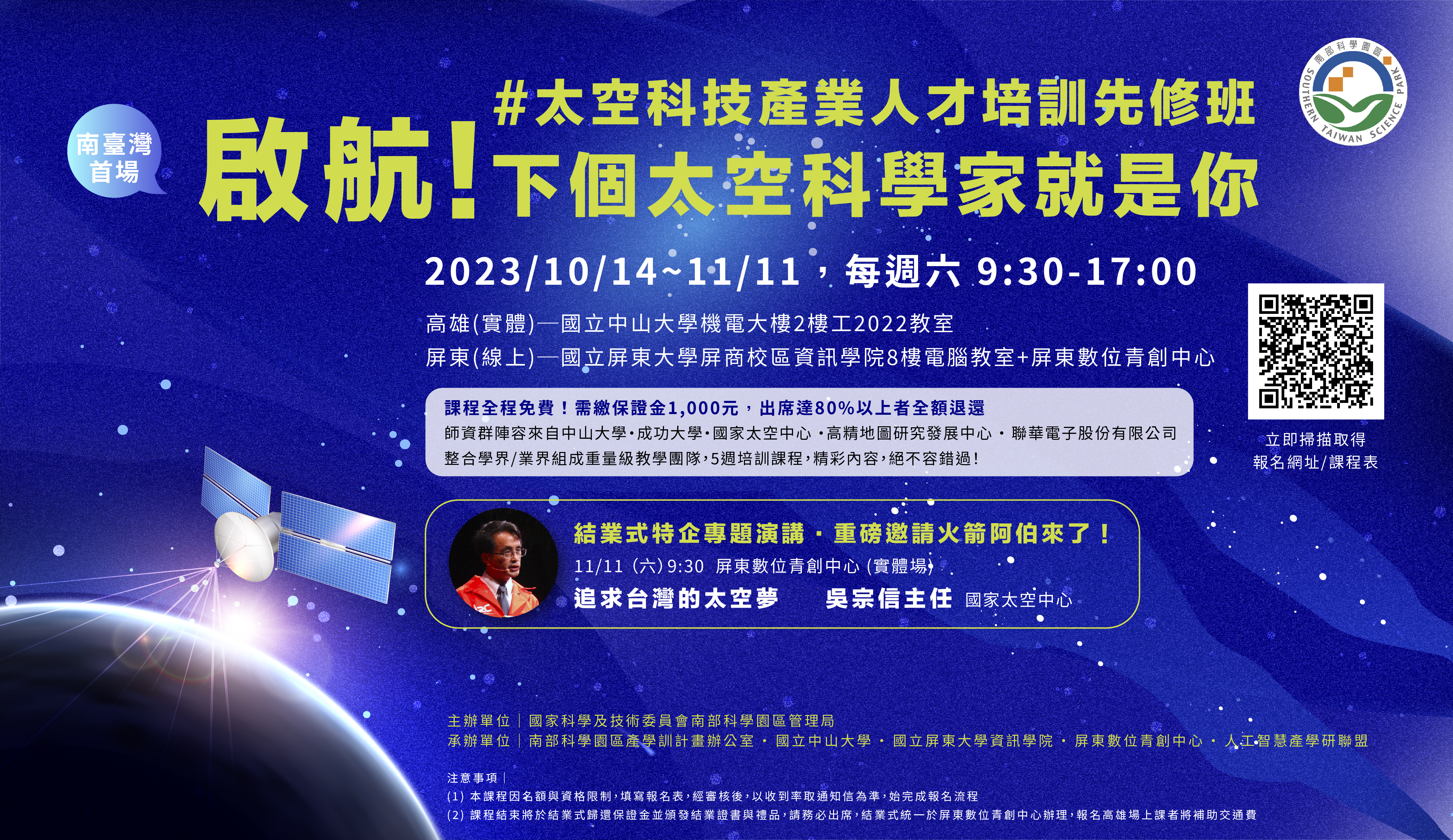 今年度南臺灣首次辦理太空產業相關課程,本課程為布局未來屏
