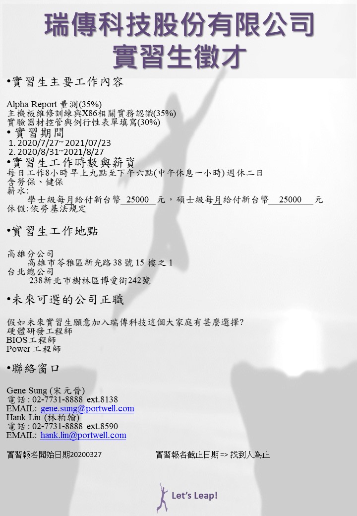 【徵才】瑞傳科技實習生徵才