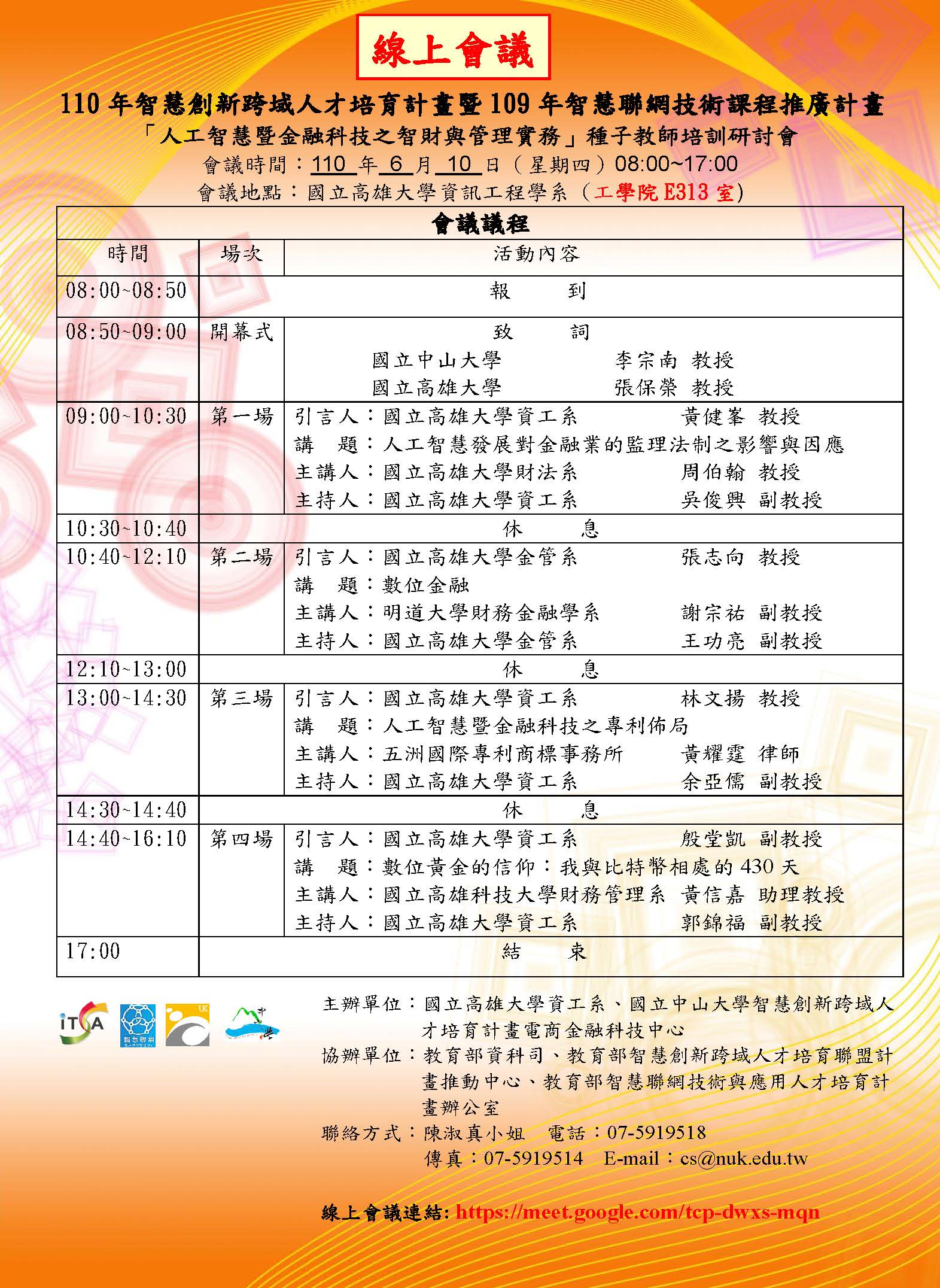 6/10 (四)「人工智慧暨金融科技之智財與管理實務」種子教師培訓研討會(線上會議)